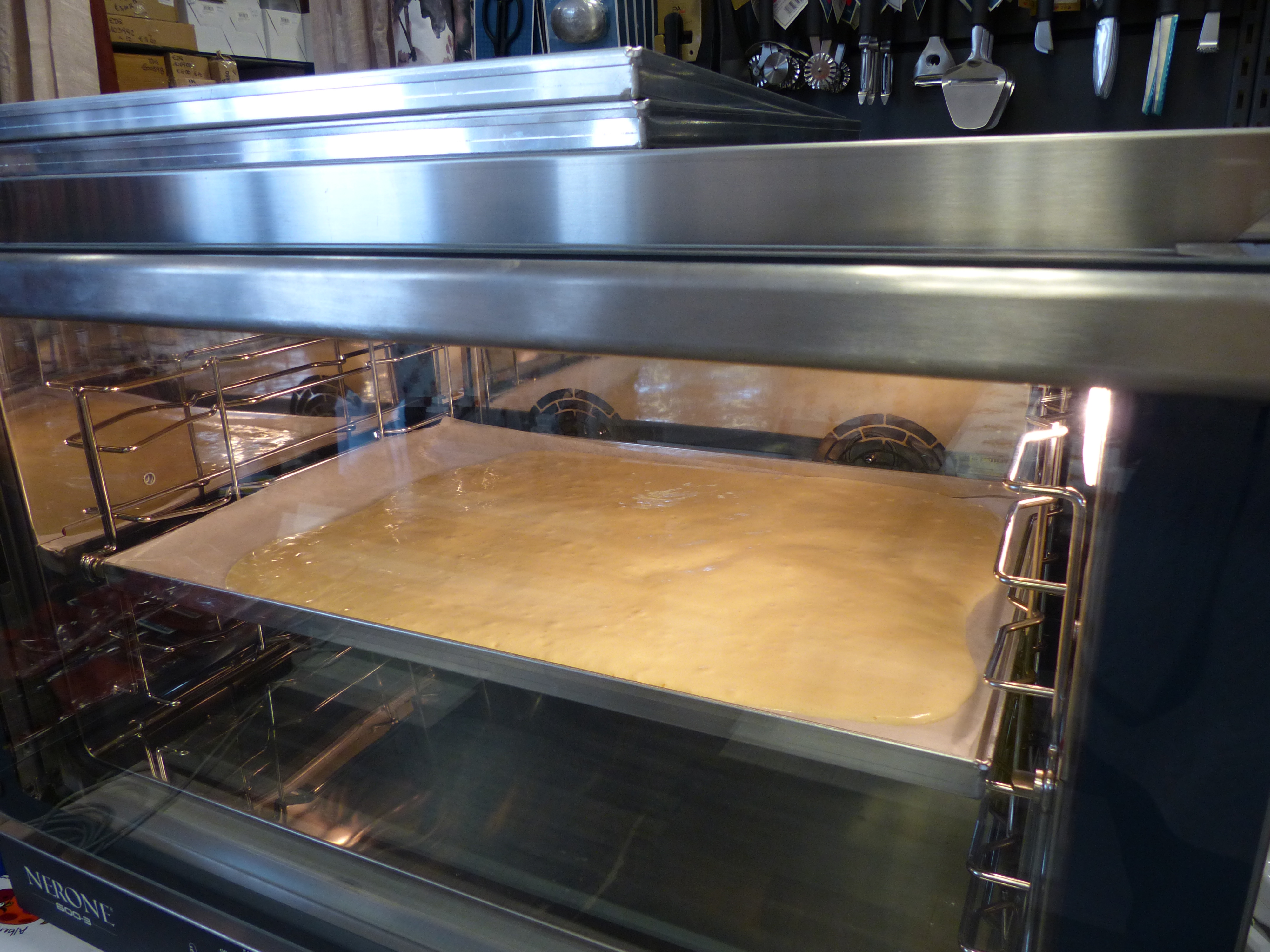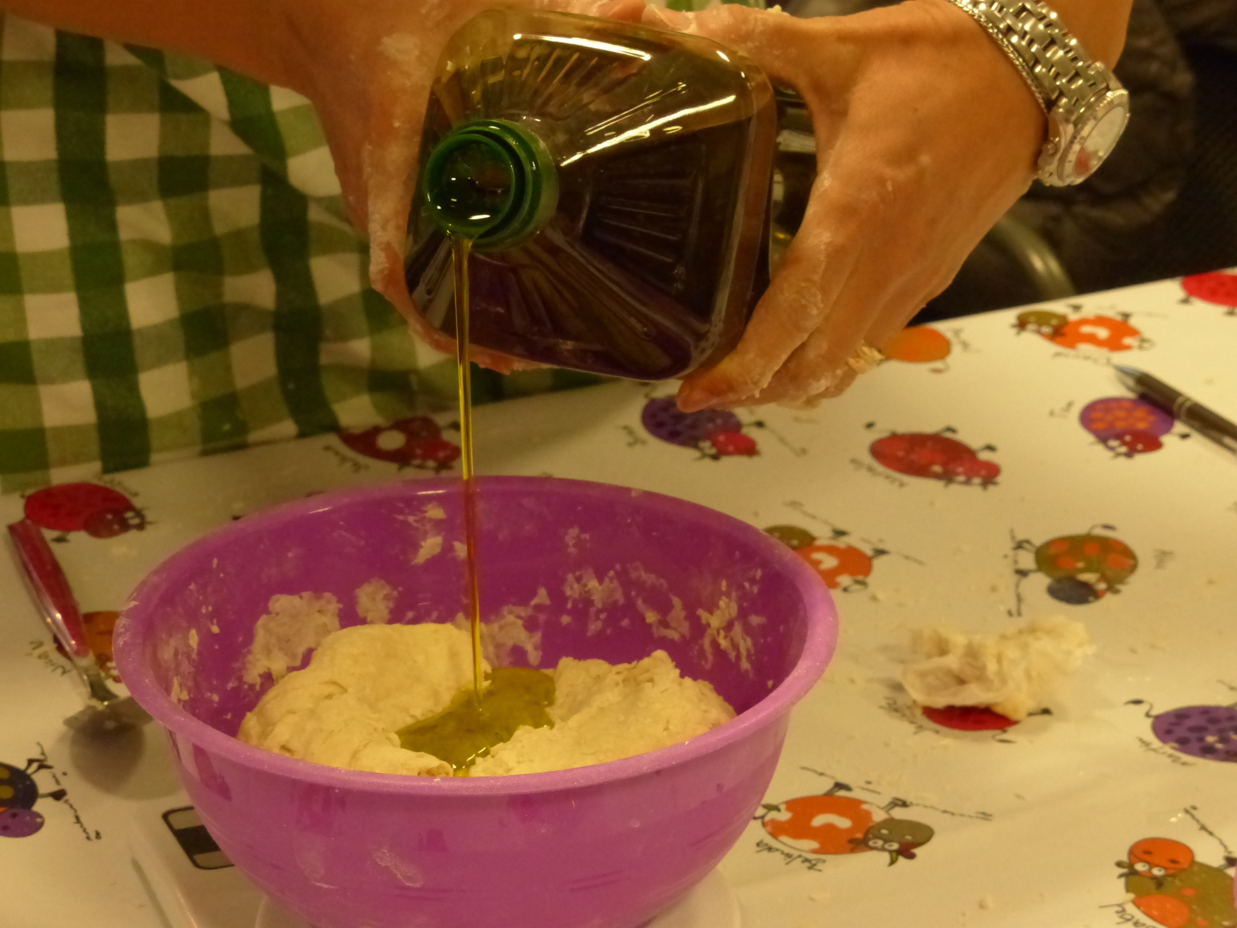 Nella seconda giornata, oltre a sciogliere dubbi e difficoltà incontrate dopo la prima giornata, abbiamo preparato il pane pugliese, tipo Altamura, ciabatta, e una focaccia dolce.