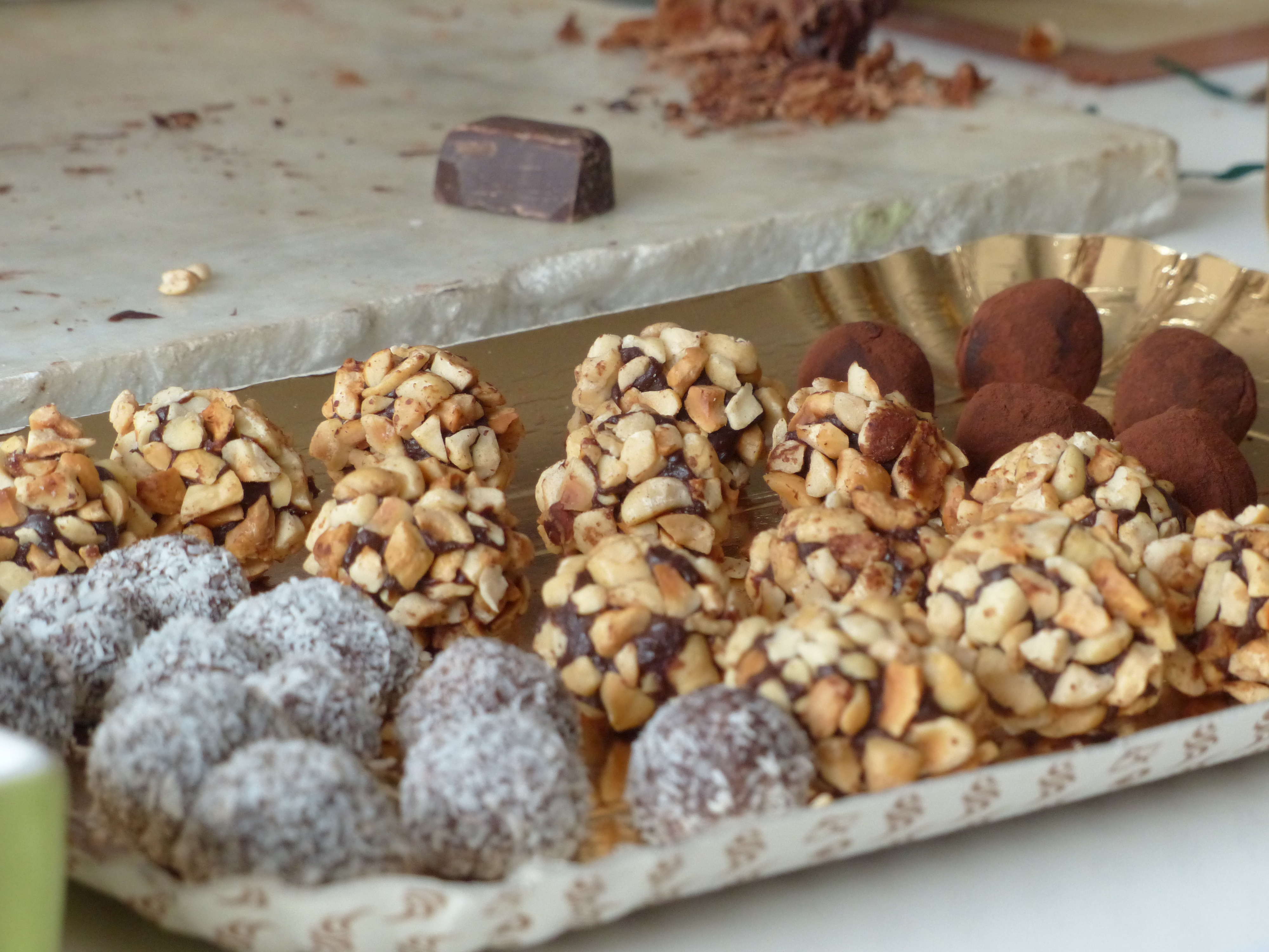 Abbiamo imparato a preparare la ganache, a temperare il cioccolato, abbiamo preparato tartufi, praline, cioccolatini, cioccolatini ripieni, ricoperti…